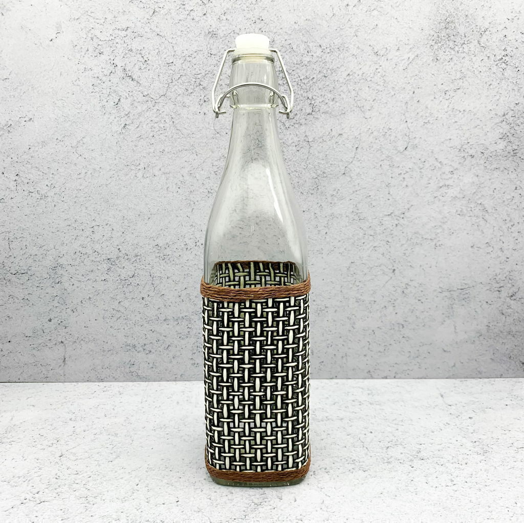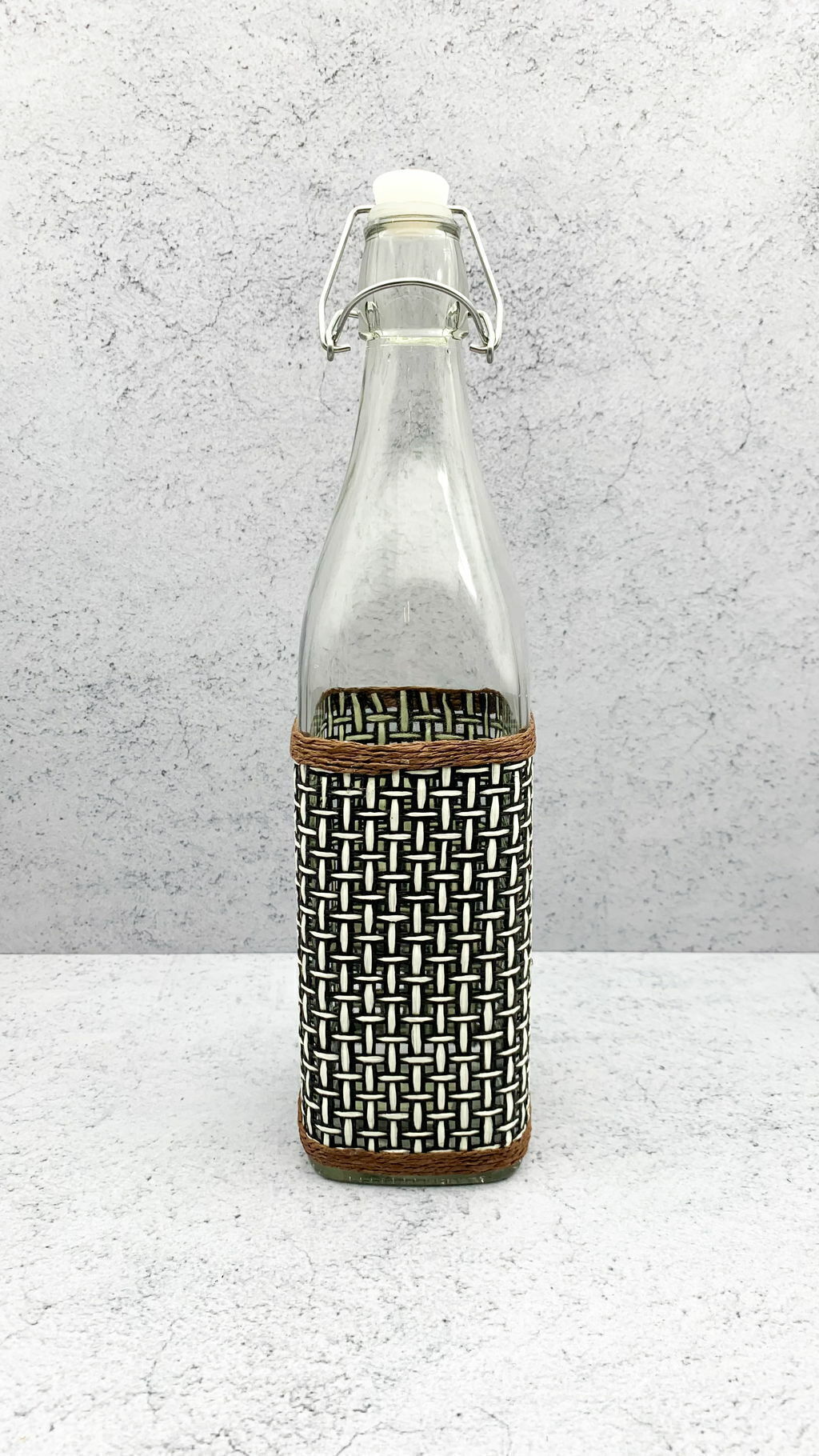 Esta botella cuadrada de vidrio es un objeto decorativo y funcional que combina la modernidad de sus líneas rectas con un toque artesanal y rústico gracias a su detalle de hilo trenzado. Es una pieza versátil que puede realzar diversos estilos de decoración, desde el minimalista al bohemio. A diferencia de las botellas tradicionales, su diseño de base cuadrada y lados rectos le confiere una estética contemporánea y geométrica,crea un impacto visual distintivo. Esta botella es un ejemplo de cómo un detalle sencillo puede transformar un objeto común en una pieza con carácter, fusionando la funcionalidad con una estética atractiva y natural.