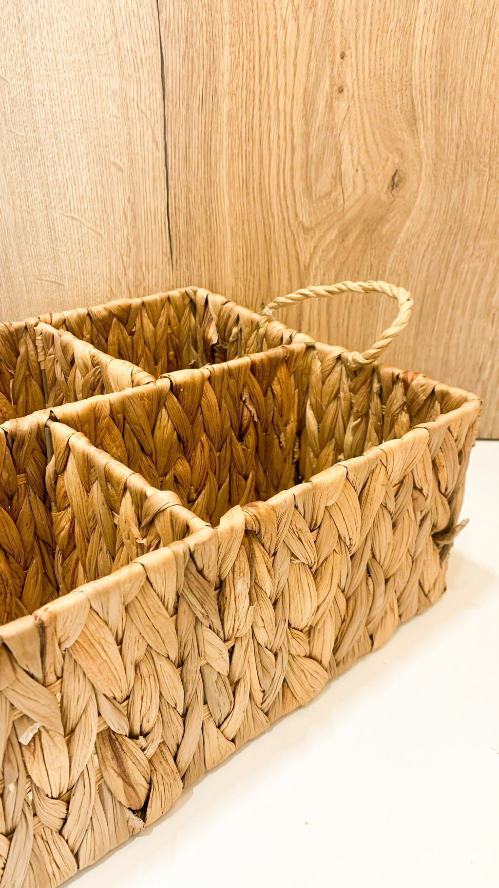 Este canasto con divisiones de seagrass es una solución de almacenamiento altamente funcional y estéticamente atractiva, que combina la belleza natural de la fibra de seagrass con la practicidad de los compartimentos internos. Este tipo de canasto es ideal para mantener el orden de objetos pequeños y medianos, aportando un toque cálido y orgánico a cualquier espacio. La característica distintiva de este canasto, son sus compartimentos o separadores internos, y están diseñados para organizar y clasificar distintos tipos de objetos, evitando que se mezclen o desordenen.