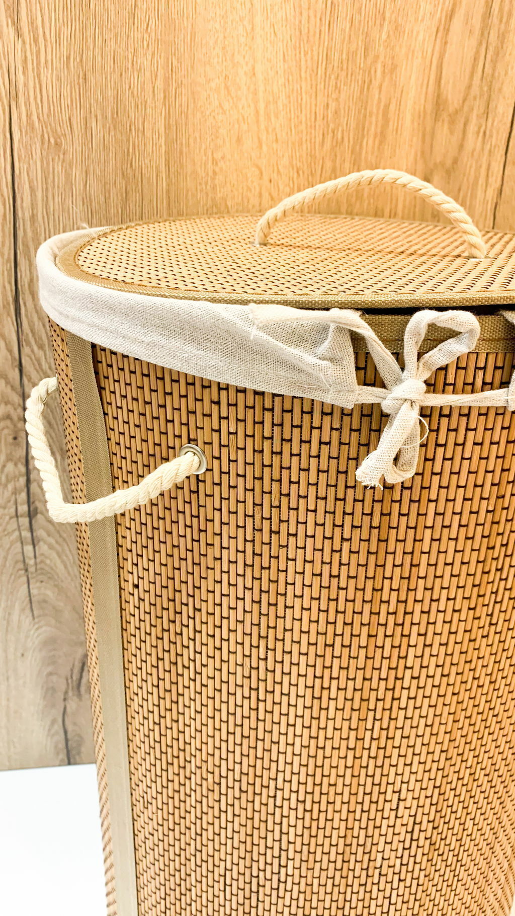 Este cesto de ropa de bambú con hilo rígido es una excelente opción para mantener la ropa sucia organizada, aportando un toque natural y moderno a tu hogar. Este tipo de cesto combina la calidez del bambú con la sofisticación del hilo a menudo utilizado para dar un diseño más definido o una estructura más robusta.Su diseño moderno y minimalistas, incluye un forro de tela,que protege el cesto de la humedad y permite retirar la ropa fácilmente para lavarla. Medida 36X60 CM