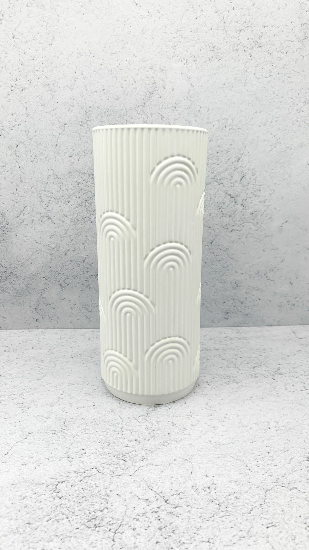 Este florero blanco de cerámica con diseño de arcoíris es un recipiente para flores, que aporta un toque de optimismo, creatividad y color a cualquier espacio donde se coloque. El color blanco del florero proporciona un lienzo neutro que resalta los colores de las flores que se coloquen en él. Su diseño con líneas curvas o geométricas que representan la idea de un arcoíris sin ser estrictamente figurativo .Su medida 24X10CM lo hace ideal .