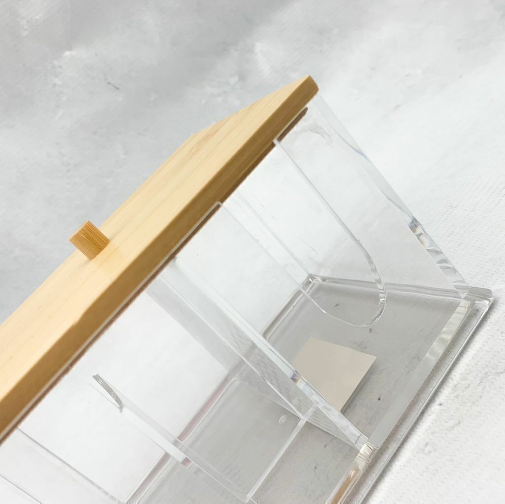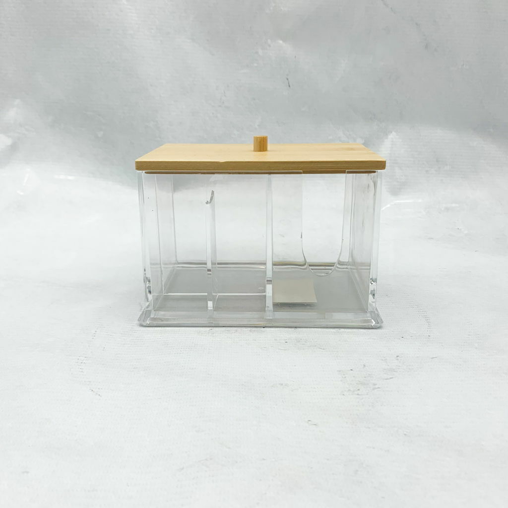 Dale un toque de elegancia natural a tu baño con este dispensador de hisopos y discos de algodón. Fabricado en acrílico transparente, te permite ver fácilmente la cantidad de hisopos y algodón restantes a demás de mantener el orden visual de tu mesada. La tapa de bamboo añade un toque cálido y natural, además de ser un material sostenible. Su diseño minimalista y funcional lo convierte en un accesorio imprescindible para tu baño. ¡Mantén tus hisopos y discos de algodón siempre a mano y organizados!