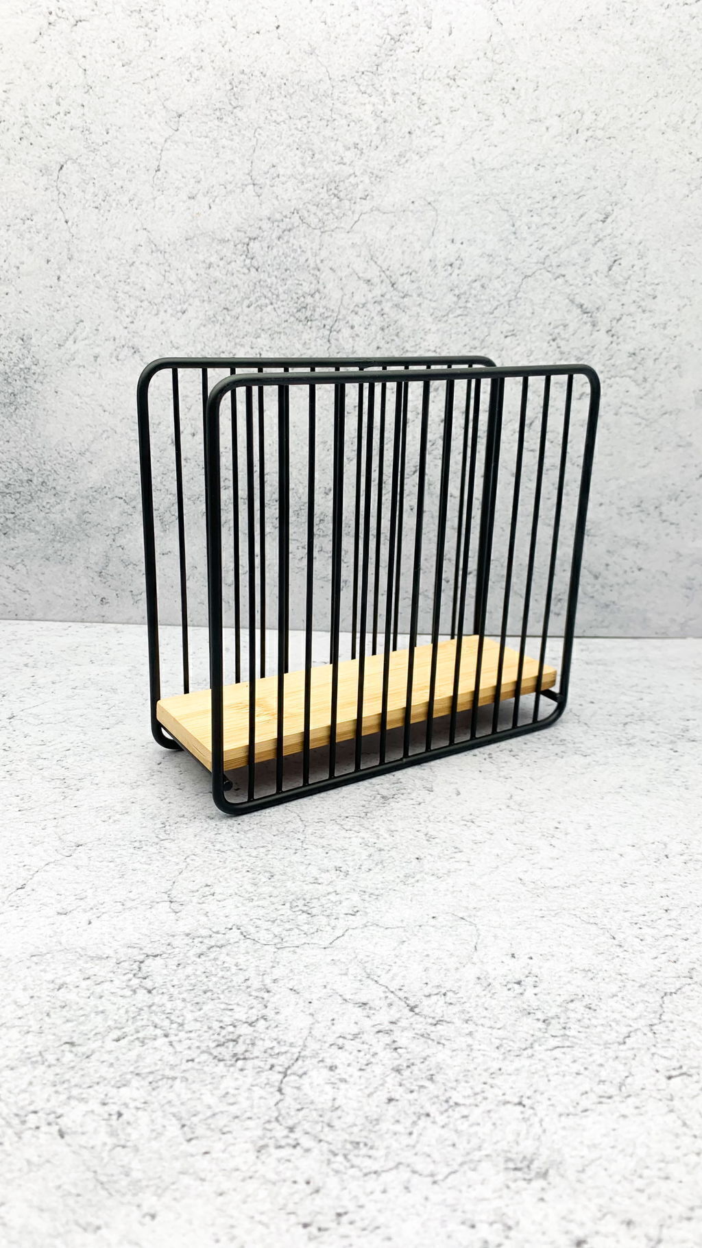 Este servilletero de metal y bambú combina la resistencia y el estilo moderno del metal con la calidez y el toque natural del bambú. Este modelo permite colocar las servilletas de forma vertical, facilitando que se tomen individualmente sin desordenar el resto y ocupando muy poco espacio en tu mesa. un accesorio elegante y funcional para tu mesa sin dudas.