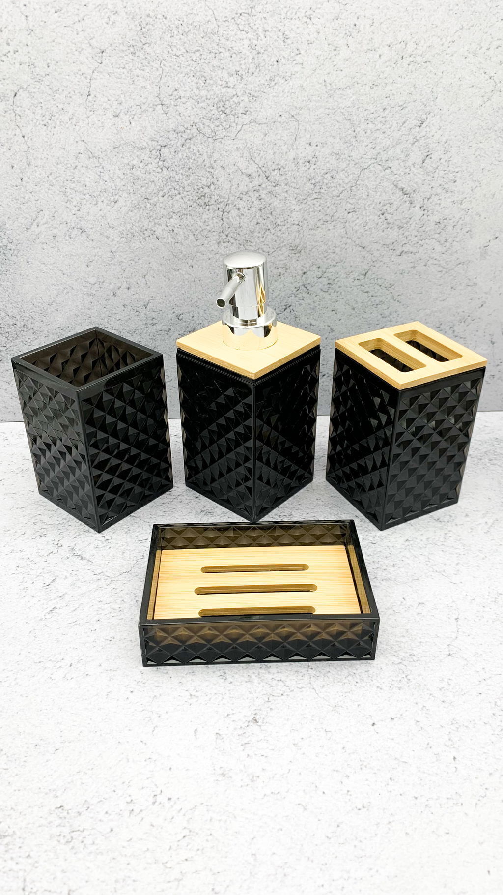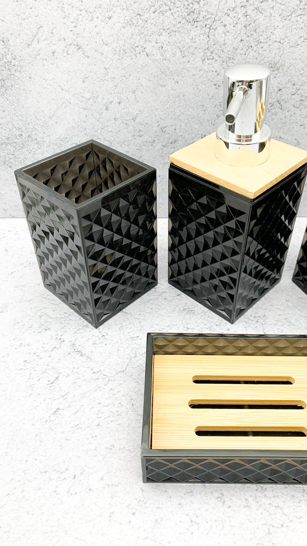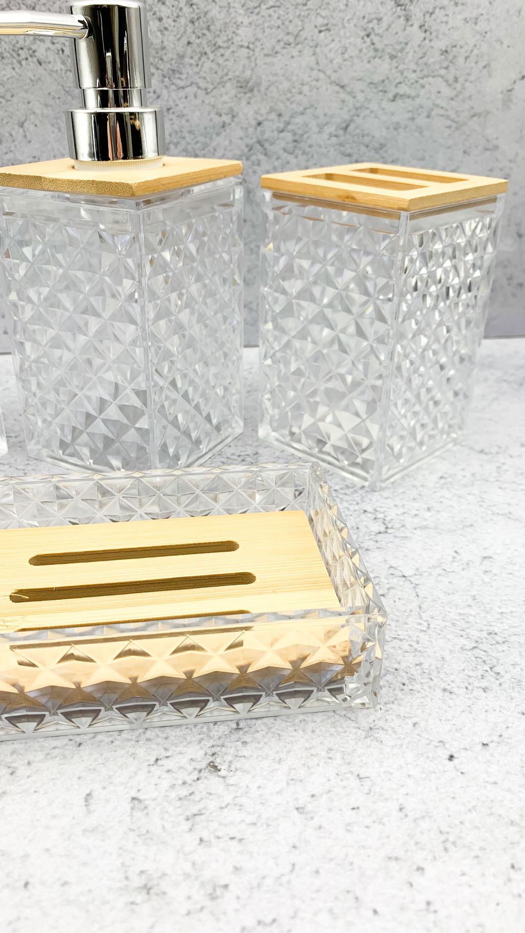 Este set de acrílico para baño es un conjunto de accesorios que combina funcionalidad y estilo, ideal para organizar y decorar el cuarto de baño. El acrílico es un material resistente que ofrece una estética moderna, limpia y minimalista, imitando la apariencia del cristal sin ser frágil.Se adapta a casi cualquier estilo de decoración, desde un baño minimalista y moderno hasta uno más ecléctico, ya que su neutralidad permite que combine con otros materiales y colores.