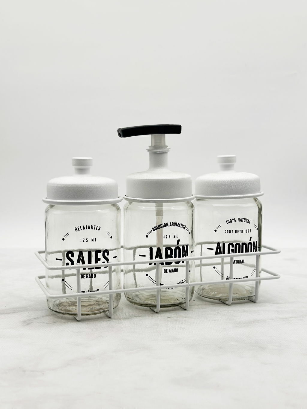 2 FRASCO DE VIDRIO (ALGODON Y SALES) TAPA DE PLASTICO