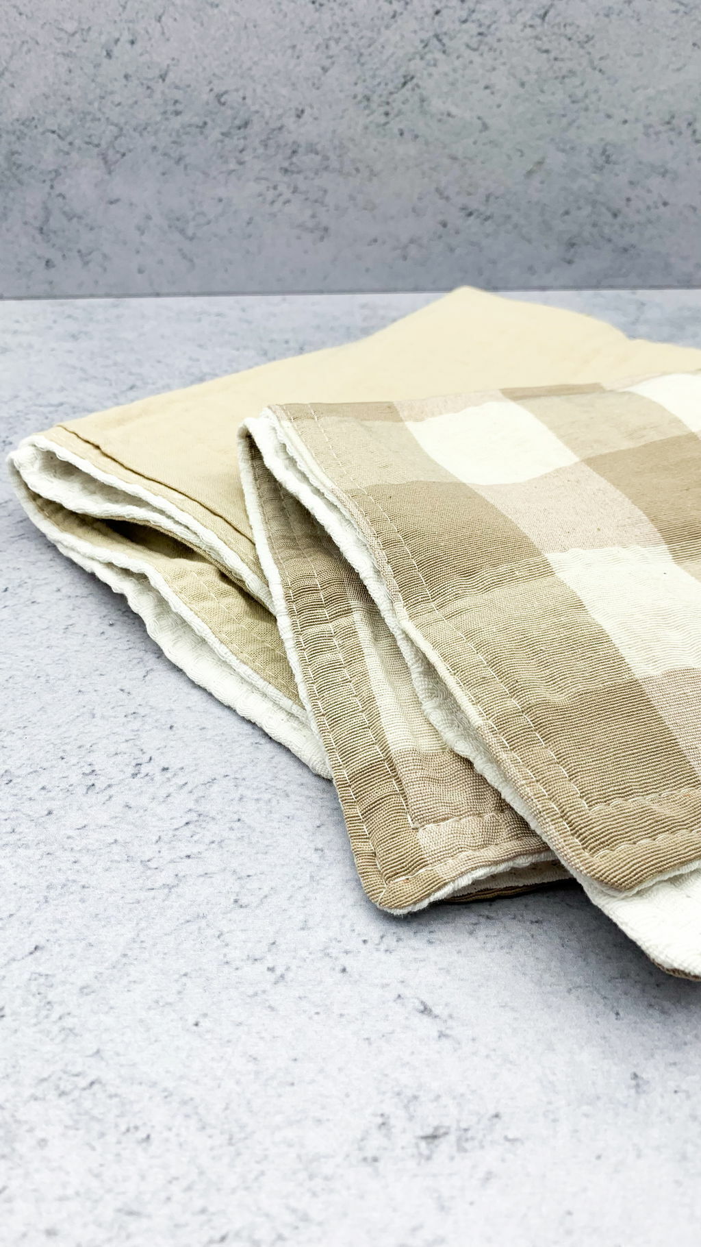 Este set de repasadores de tela lisa y de panal ofrece una combinación de texturas y funcionalidades que son ideales para las diferentes tareas en la cocina. Este set incluye un modelo liso y uno estampado a cuadros combinados lo que lo hace ideal para combinar con la deco de tu cocina.